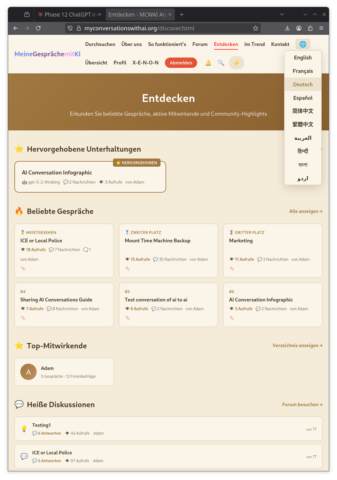 MCWAI was built by Adam, working from libraries and coffee shops, coding on a small laptop, uploading files via FileZilla, funding the server costs through Uber Eats delivery work. There's no venture capital here. No team of fifty engineers. No growth hacking strategy. Just a person who believed that AI conversations are worth preserving and that the platform to do it should be open, multilingual, and built for the actual humans who use it.
